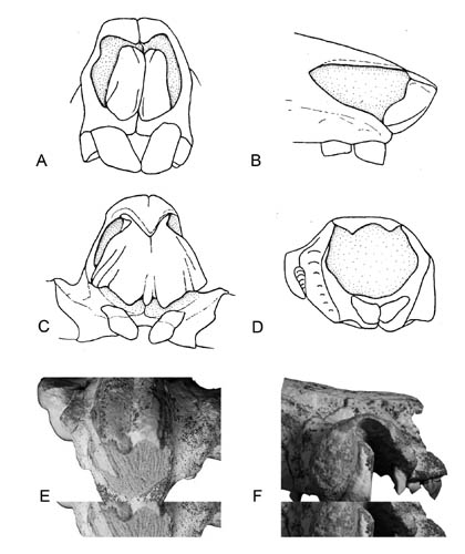 猪属 (a)、(b) , 巨林猪属 (c) 和弓颌猪属的吻部(d—f) (侯素宽供图)