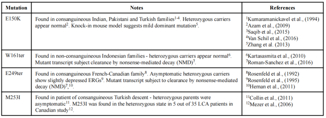 图1. 与视网膜色素变性(RP)相关的RHO基因突变类型 [2]。