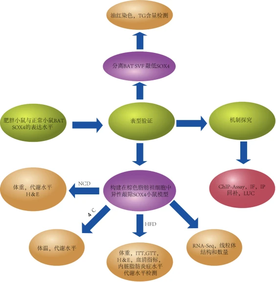 综上所述研究人员得出以下结论:①SOX4是小鼠棕色脂肪发育过程中必不可少的元件。②SOX4可能参与小鼠棕色脂肪生理状态的维持。